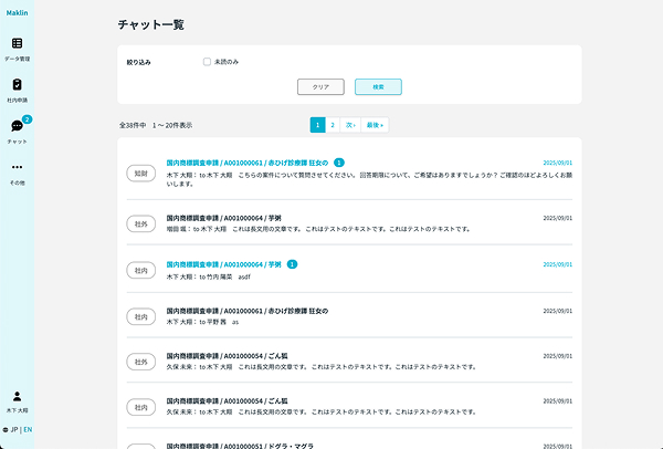 メールのやり取りに代わり、Maklin内でメッセージを一元化。