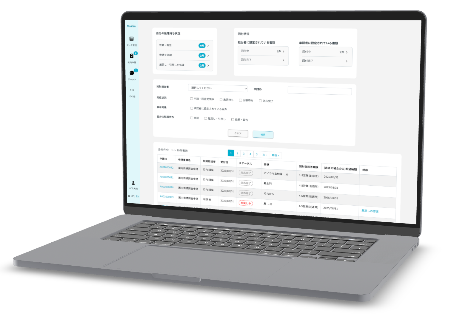 各回覧案件のステータスを自動で可視化し、一覧で把握可能。